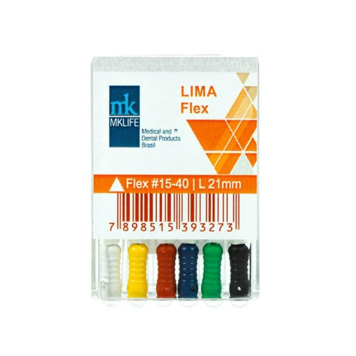 A Lima Flex 1ª Série fabricada pela MK Life é uma lima endodôntica feita em aço inox com secção transversal triangular, indicada para uso em procedimentos de endodontia (canal).